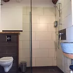 Hosté mohou využít prostornou sprchu, samostatnou toaletu a vanu bez příplatku.